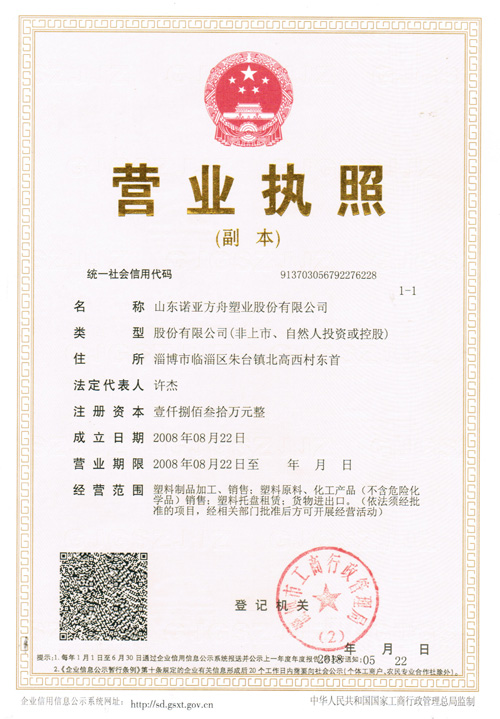 山東諾亞方舟營業(yè)執(zhí)照